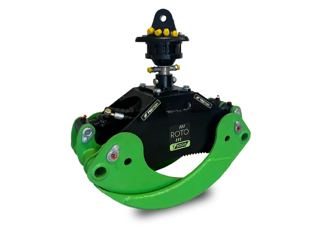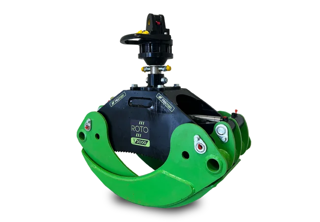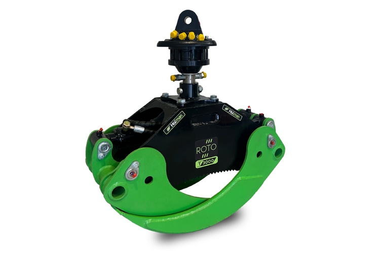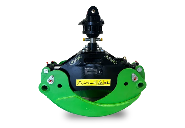The HOFMAN ROTO T3000 grapple with rotator is a reliable tool for efficient forestry work. It features a robust construction, anti-corrosion protection, and 360° rotation powered by a strong hydraulic rotator. With its wide opening range, it is suitable for handling various types of logs. The grapple ensures safe, precise, and stable operation even in demanding conditions. An ideal choice for professional forestry use in combination with HOFMAN machinery.