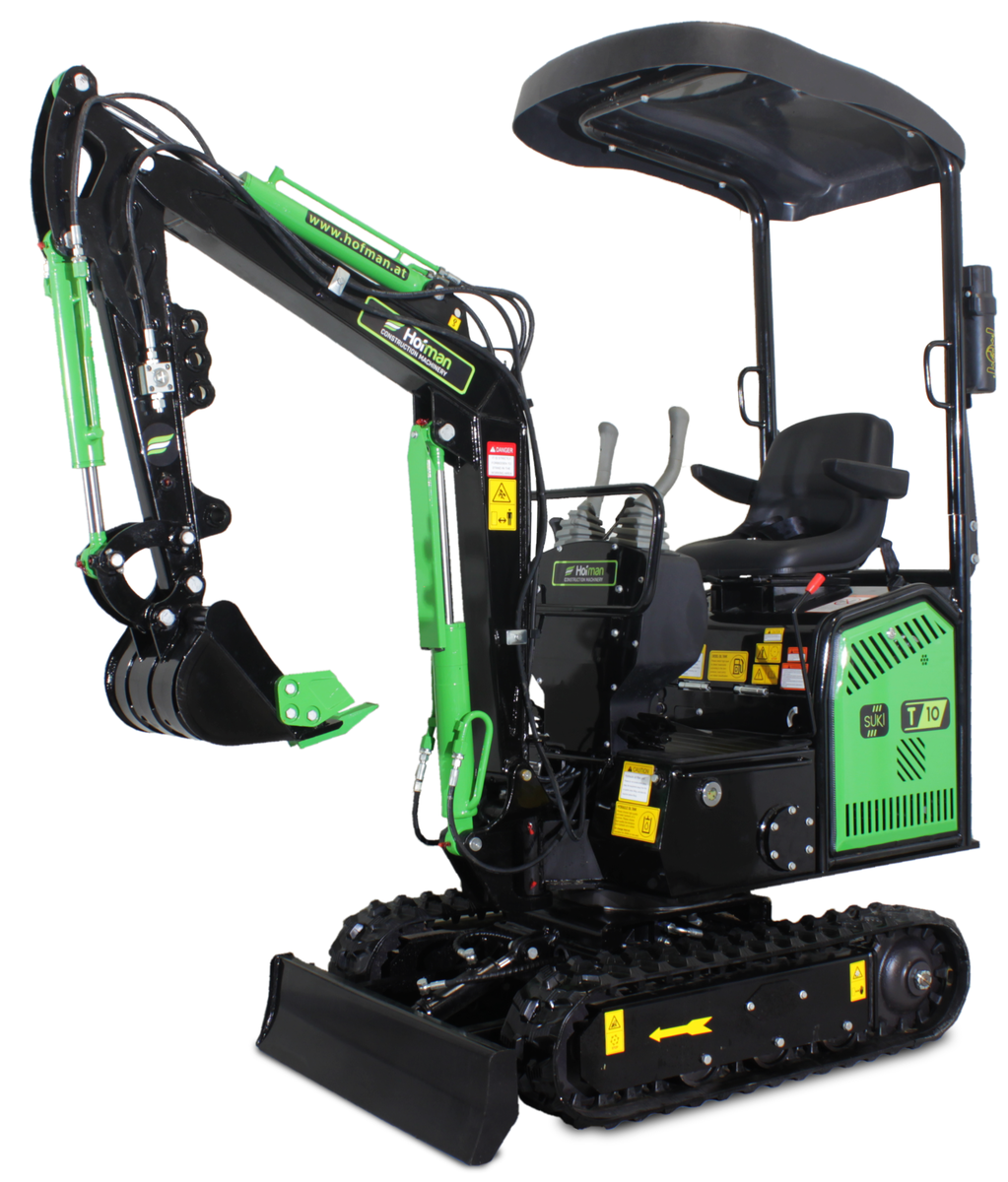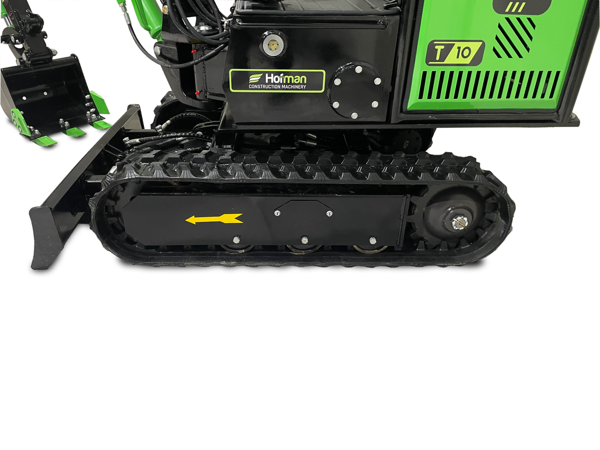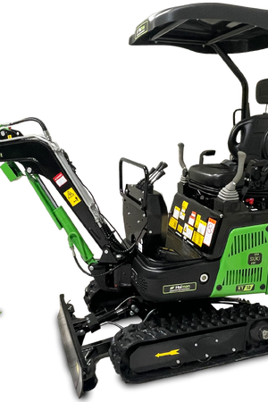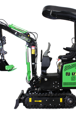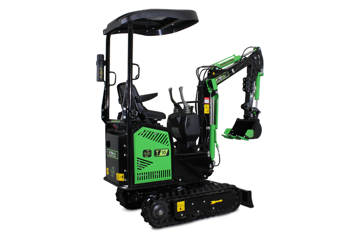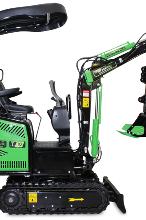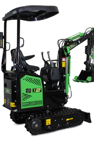 Model T10 je osnovni, a izjemno zanesljiv mini bager, idealen za lažja dela okoli hiše in vrta. Opremljen je z enovaljnim zračno hlajenim motorjem KOOP. S težo 850 kg je zelo okreten in primeren za ozke in težko dostopne terene.Mini bager ima tudi lomljivo roko, kar še olajša delo.