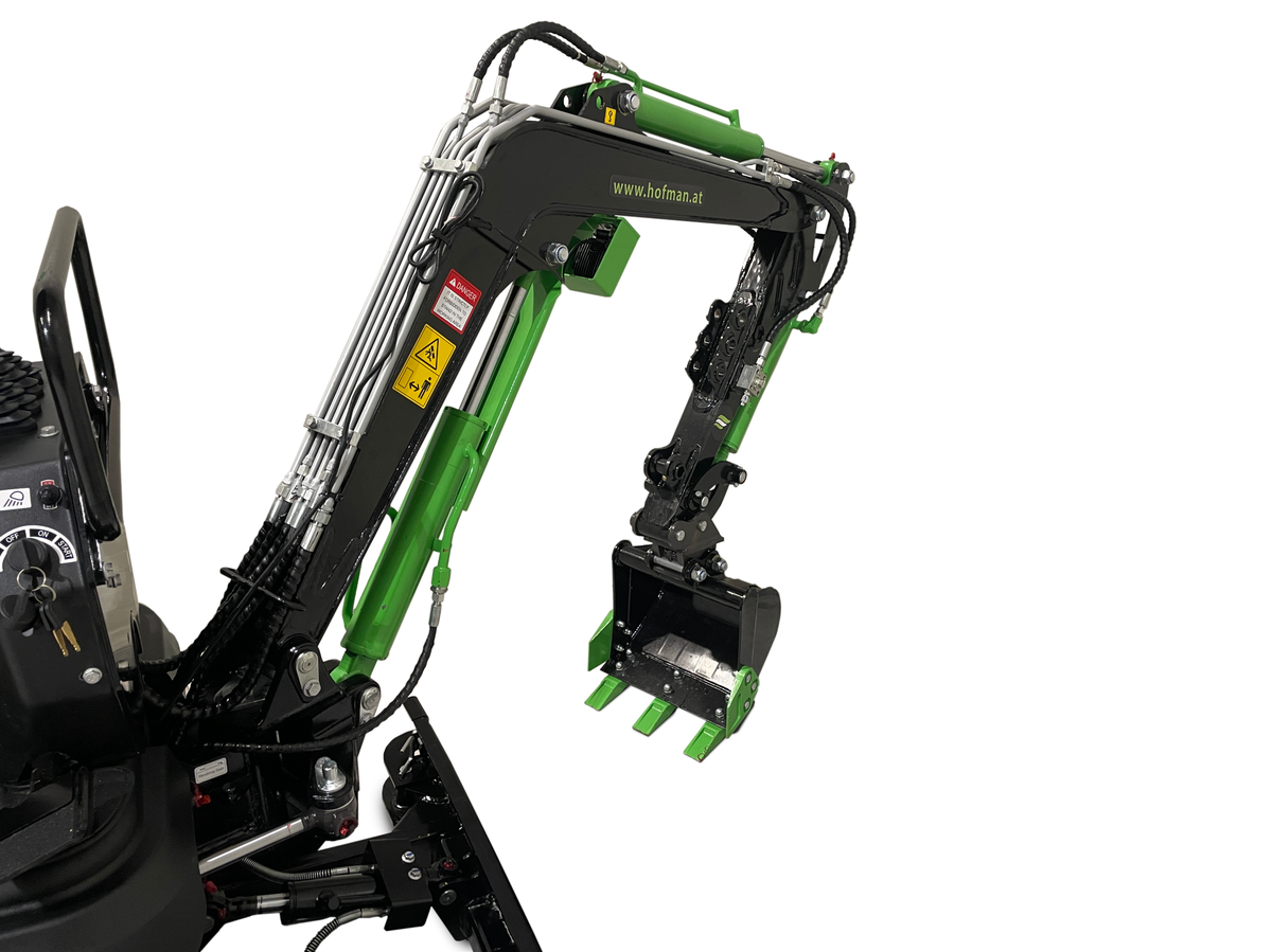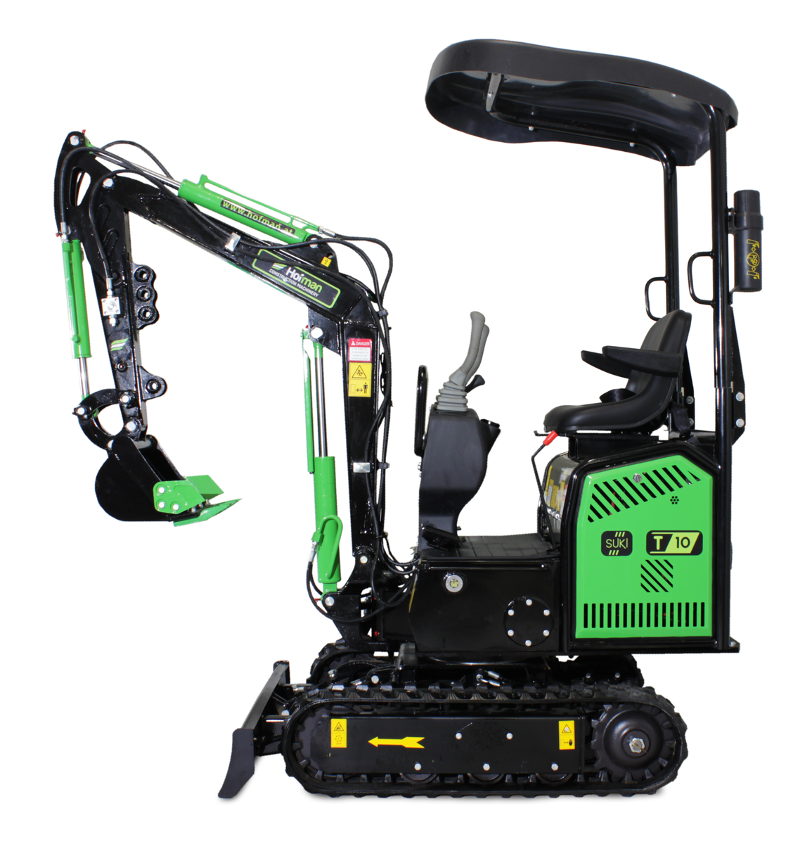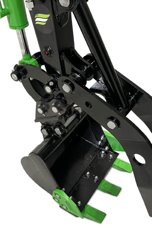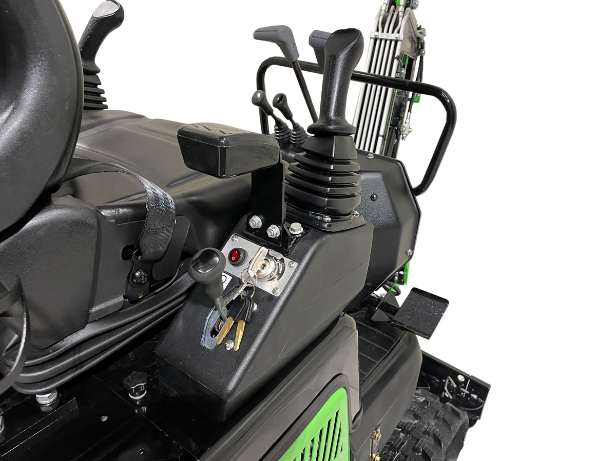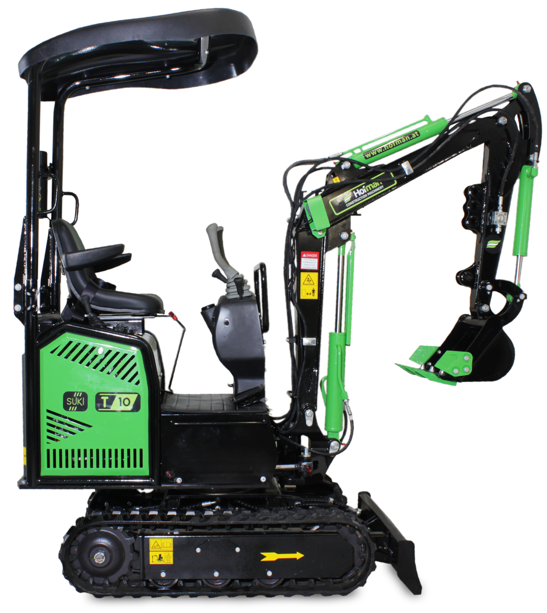 Model T10 je osnovni, a izjemno zanesljiv mini bager, idealen za lažja dela okoli hiše in vrta. Opremljen je z enovaljnim zračno hlajenim motorjem KOOP. S težo 850 kg je zelo okreten in primeren za ozke in težko dostopne terene.Mini bager ima tudi lomljivo roko, kar še olajša delo.