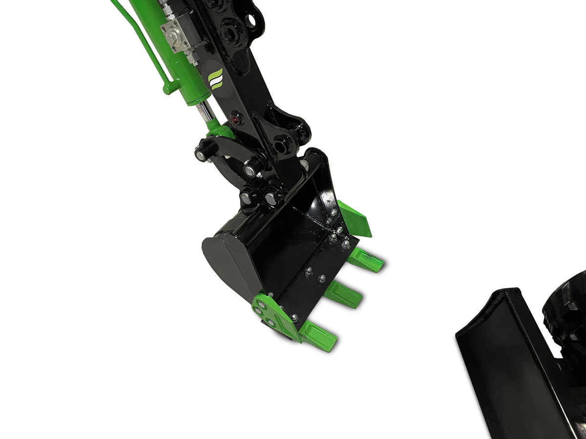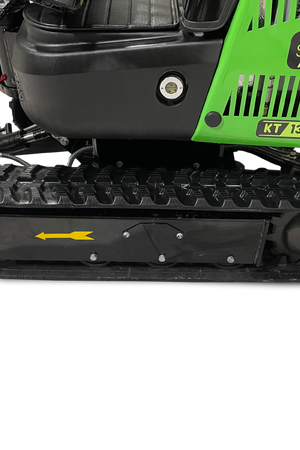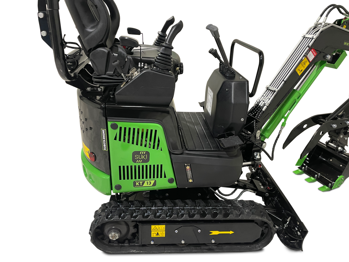 KT13 je okrepljen mini bager z vodno hlajenim motorjem Kubota D902, ki nudi višjo moč in zanesljivost. Primeren je za raznovrstna opravila na terenu, hkrati pa ohranja kompaktnost in stabilnost. S težo 1120 kg in mehanskim hitrim priklopom je zelo uporaben na domačih in manjših gradbiščih.
