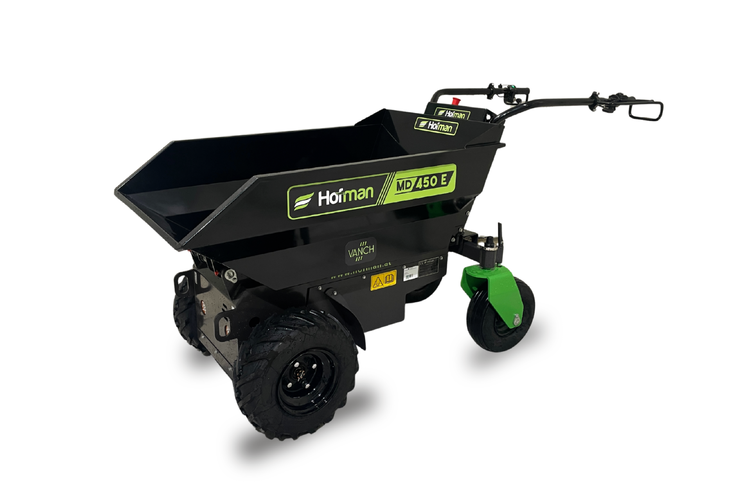 MD 400 GT je robustnejši mini prekucnik z večjo nosilnostjo 400 kg, zasnovan za zahtevnejša transportna opravila na gradbiščih in kmetijah. Opremljen je z zanesljivim bencinskim motorjem Loncin/Zongshen 196 cm³ in ročnim menjalnikom s tremi prestavami naprej in eno nazaj. Zaradi okretnosti in kompaktne oblike se odlično obnese tudi na omejenih delovnih površinah.